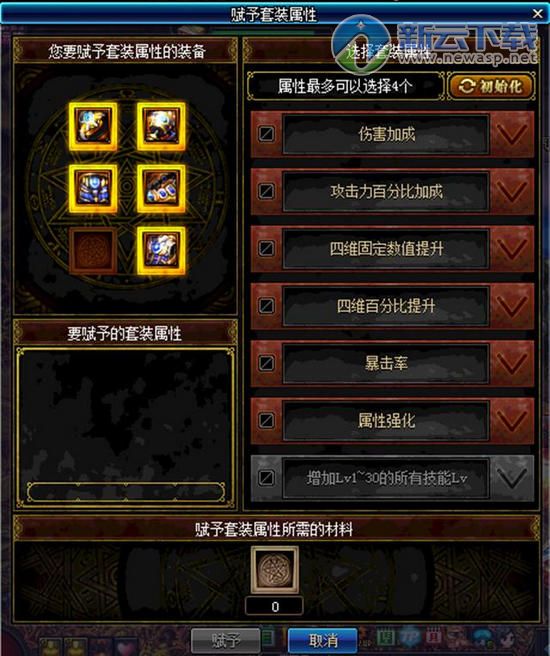 -可以指定套装赋予套装属性-跟装备改造相同只能赋予相同属性条内的属性。
